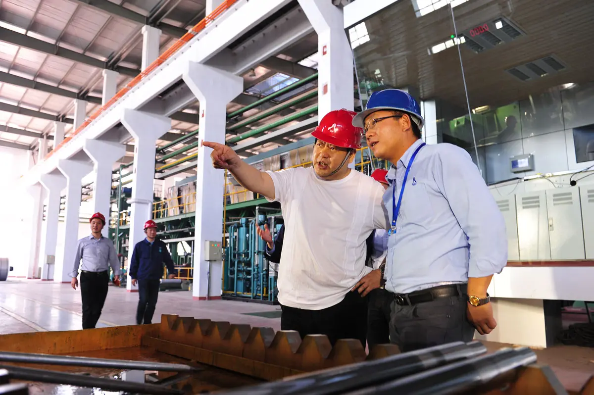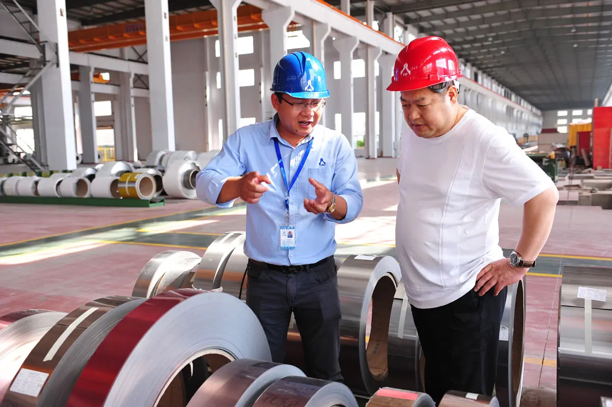 在公司总经理周德勇等的陪同下,金友华董事长一行先后参观了精密冷轧不锈钢生产线、耐指纹车间、磨砂车间、原料库区、成品库区等生产现场,随后在贵宾室双方就进一步加强业务合作,拓宽合作领域,实现共赢发展等共同关心的话题进行了亲切交流。