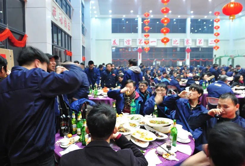 晚宴上,甬金人和客户们欢聚一堂,载歌载舞,喜迎凤凰年的到来。周德勇总经理发表了激情洋溢的新年致辞并宣布晚宴开始,董事长虞纪群、总经理周德勇与公司各高层领导向每位员工敬酒,在每一桌的杯光酒影中,我们看到了员工们充满坚定而憧憬的眼神,相信在充满希望的2017年里,董事长虞纪群会带领甬金人向更高的目标迈进。
